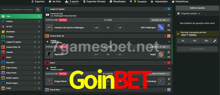 O Goinbet oferece uma grande seleção de opções de apostas em e-sports com probabilidades competitivas